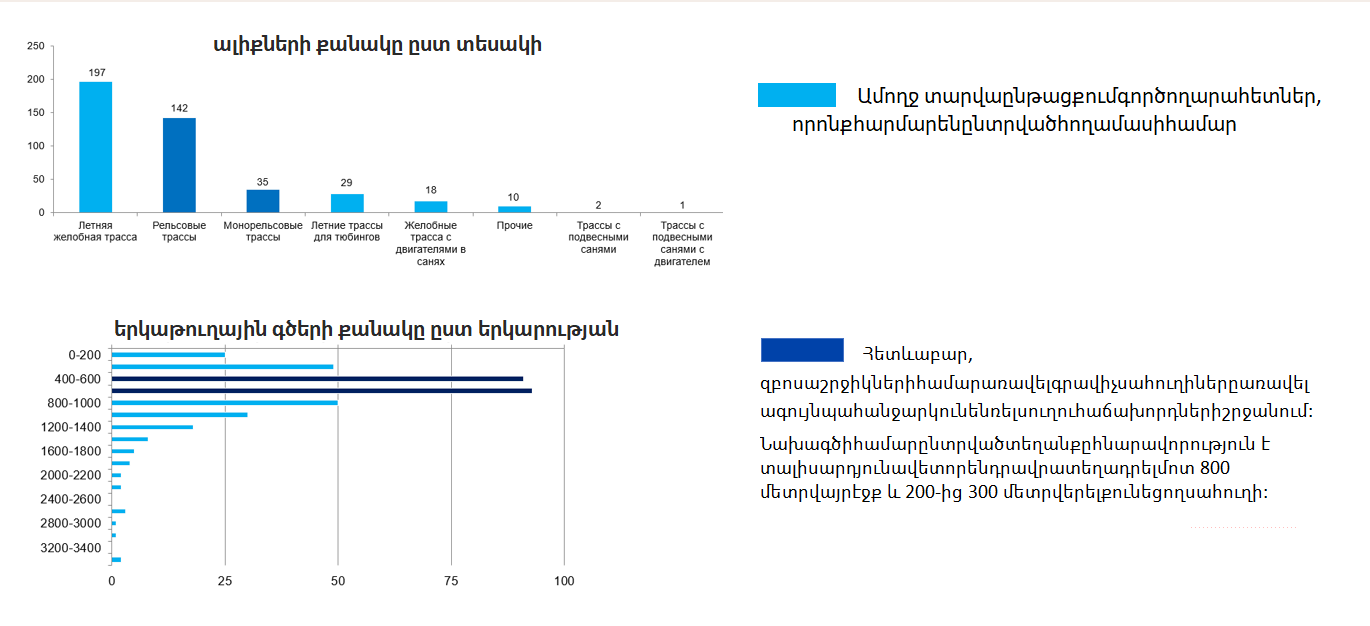 Դահուկային սահուղիներ - երկարությունը >30 կմ, բարձրության տարբերությունը 853 մ